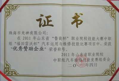 我司榮獲2011年山東省技能大賽“優秀贊助企業”榮譽稱號 2011-04-18 10457 4月7日,在「2011年山東省“魯商杯”職業院校技能大賽」中職組“福田雷沃杯”汽車運用與維修技能大賽項目中,我司榮獲“優秀贊助企業”榮譽稱號。