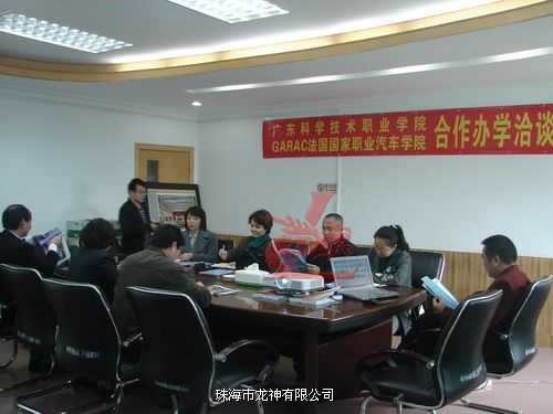 2010年1月法國國家職業汽車學院國際項目合作負責人張丹宇老師與外交部阿若略女士在我司領導的陪同下到廣東科學技術職業學院洽談合作辦學,受到學院領導及老師的熱情接待和歡迎。會上廣科院周院長介紹了與龍神公司已愉快地合作三年,培養出的學生得到社會用人單位的認可,充分肯定了與龍神合作辦學模式,并感謝龍神在汽車鈑噴技術及設備上給予的幫助和支持。我司彭總曾經在法國留學,對法國教學體質有一定的了解,也希望為法國汽車學院與中國搭建長期合作的平臺,從而推動汽車后市場的發展;促進鈑噴技術的國際交流,使鈑噴行業國際化。通過此次友好洽談參觀考察,法國國家職業汽車學院國際項目合作負責人表示將會進一步了解中國汽車鈑噴技術,加強國際交流。