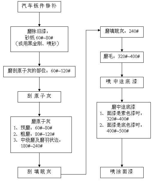 汽車(chē)修補(bǔ)干磨程序及砂紙的選擇 備注: 1、除舊漆時(shí)采用黑金剛配除漆除銹機(jī)能夠快速地除去平面、狹縫及凹凸不平表面的舊漆與銹漬;采用噴砂槍噴砂還可以很快地去除某些孔隙、縫隙或手都很難伸進(jìn)去的部位的舊漆與銹斑; 2、在磨填眼灰、中途底漆和尤其有邊角位、弧度位的表面時(shí)配打磨緩沖墊(置于圓盤(pán)砂紙和托盤(pán)之間)能夠使打磨作業(yè)更加順暢,并能獲得規(guī)則的表面質(zhì)量。 2007-08-25 12476